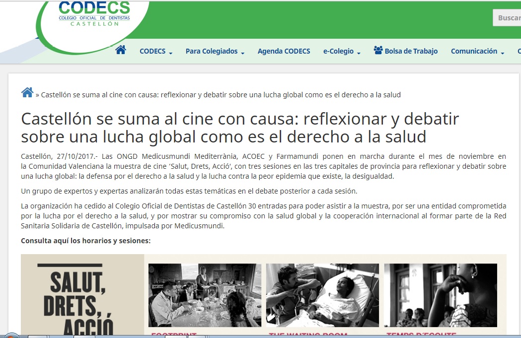 El Colegio Oficial de Dentistas se hace eco de la Mostra de cine “Salut, Drets, Acció”