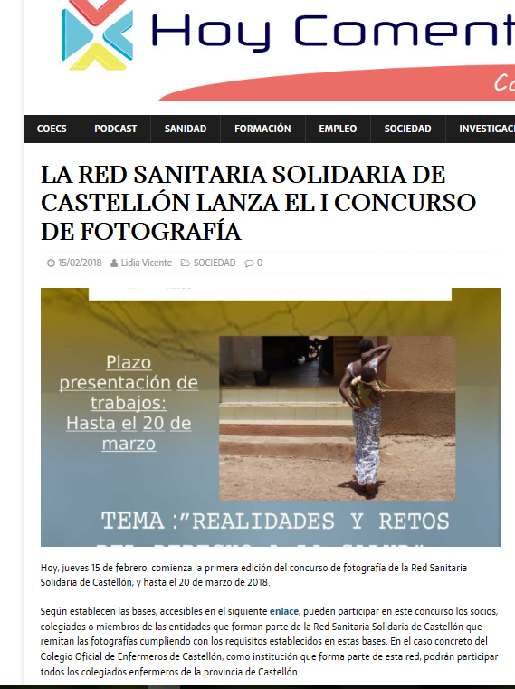 EL Colegio Oficial de Enfermería publica notas de prensa y difunde en su web y redes sociales el I Concurso de Fotografía de la Red Sanitaria Solidaria de Castellón.